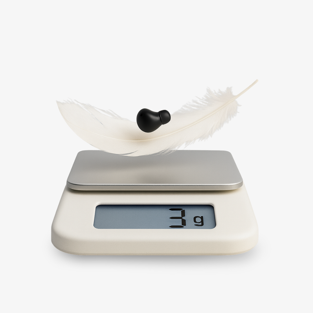Weighing only 0.1oz (about 2.8g), these earbuds are designed for all-day comfort. Their ergonomic shape fits securely without strain, making them perfect for both work and leisure.