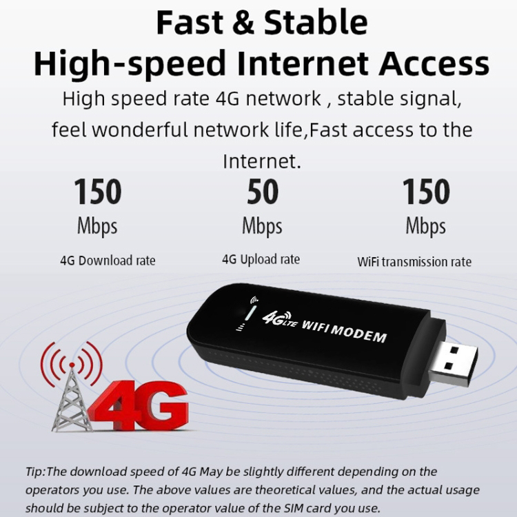Plug and Play: Enjoy the convenient USB power supply way of a 4G network. Connect the power device, insert a SIM card, and use the SIM card data to surf the Internet anytime, anywhere.